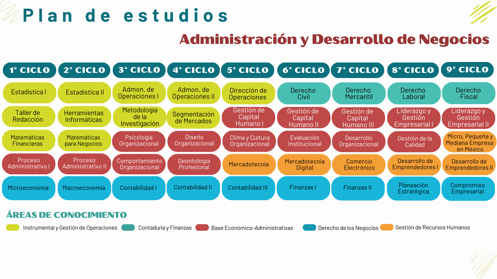 - Conocimientos sólidos en finanzas, mercadotecnia, recursos humanos y operaciones para la toma de decisiones efectivas.